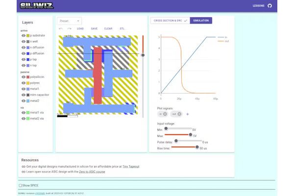 Matt Venn and Uri Shaked have worked together to develop an open-source platform designed to teach how chips work at the silicon level, using a friendly browser-based interface: SiliWiz, the silicon wizard.